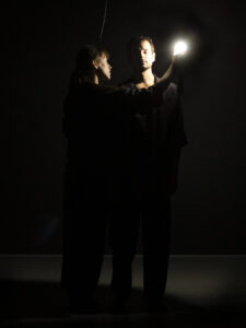 Von unseren niederschmetternden und inneren Kämpfen hallt der Puls des Lebens wider. Als Folge entsteht das Chaos wie eine grosse Leere, ein Raum, in dem die Zeit verzerrt und zur Materie einer fortwährenden Erneuerung wird. Dieses Duett aus Chaos und Erneuerung gleicht bildhaft und choreografisch einem Atemzug. Es ist wie ein Eintauchen in die dumpfen Schreie unserer unterdrückten Wut. Das Hervorrufen des Kampfes durch fantasierte, manchmal erhebende Augenblicke, die aus Ängsten und tiefen Sehnsüchten bestehen, wird hier im Tanz durch die Intimität der Langsamkeit dargestellt.