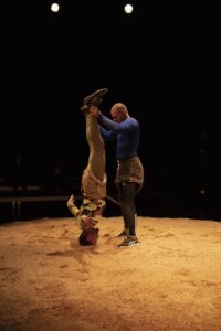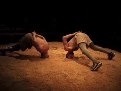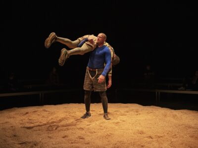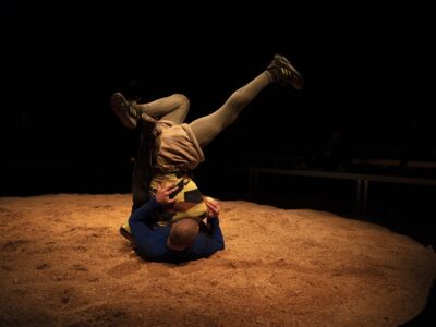 Das Schwingen gilt als Schweizer Nationalsport und ist als solcher eng verknüpft mit konservativen, nationalistischen und patriarchalen Werten, die für eine moderne Gesellschaft nicht unproblematisch sind. Im Stück nähert sich Johanna Heusser dem Schwingen mit einer Mischung aus Faszination und Skepsis. Mit zwei Tänzern spürt sie dem performativen Potential nach, das dem Sport eigen ist und verhandelt Körper- und Geschlechterbilder, die in den Ritualen des Schwingens produziert werden. Kann das Schwingen als lebendige Tradition auch Projektionsfläche für einen kritischen Gegenentwurf sein?
