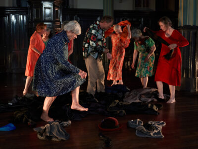 In «Letzte Dinge» geht es ums Abschiednehmen von Menschen und Dingen, Umgang mit Verlust und Nutzlosigkeit, Erinnerungen und Einsamkeit. Es scheint auf der Hand zu liegen, dass Älterwerden und Sterben zusammengehören, aber darüber ein Stück zu machen, ist im Grunde eine radikale Entscheidung und führt alle Beteiligten an persönliche Grenzen. Zusammen mit den Tänzer*innen haben die Choreografinnen Bettina Holzhausen und Katrin Oettli eindrückliche Bilder über das Verschwinden und Loslassen geschaffen und mit einer Prise Schalk und schwarzem Humor gewürzt.
