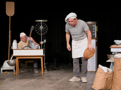Mit Rhythmus, Klang und Sprachgefühl erzählen zwei Freunde die Geschichte des Bäckers Schmidli und seiner Hündin Martha.