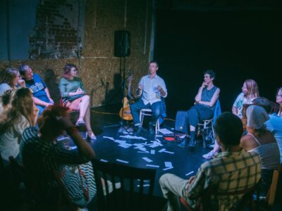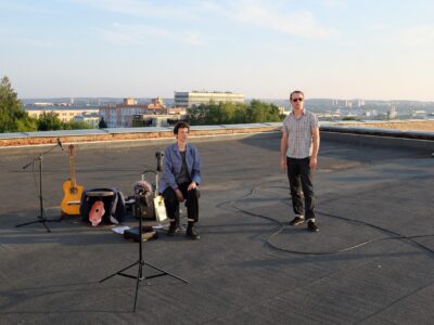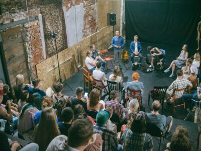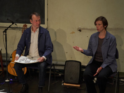 Eine Gesprächsrunde mit Musik von Arnold und Komarov Wandertheater.